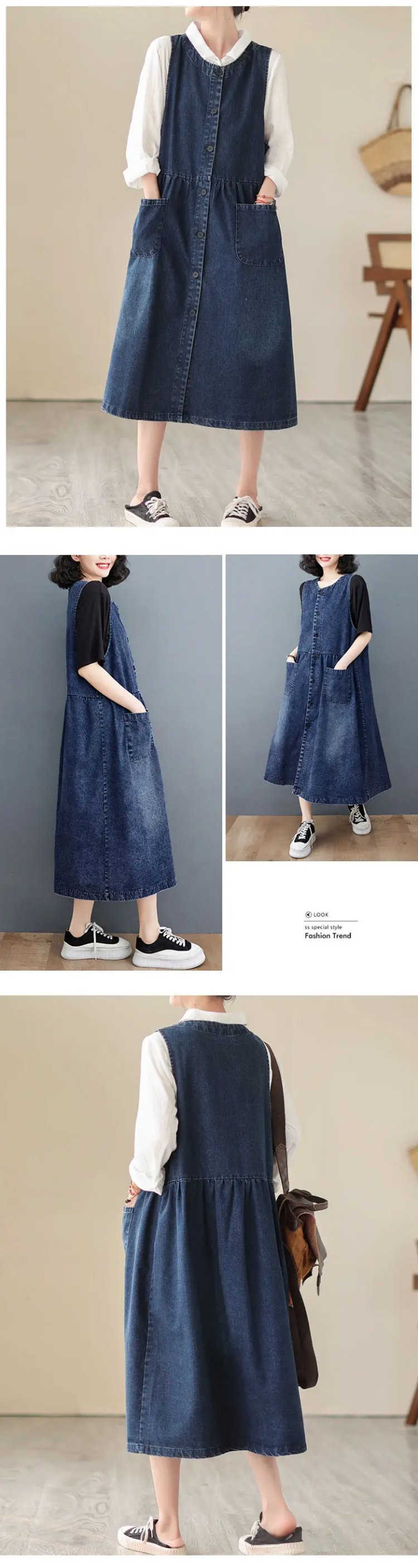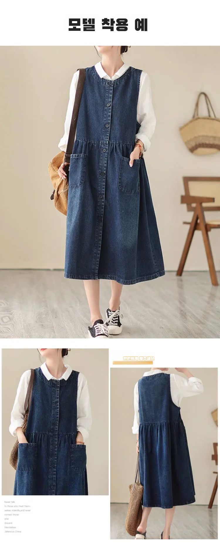 통통 Mm 여름 루즈핏 빈티지 데님 원피스 살 가리고 날씬해 보이는 미디 스커트 여 데님 나시 스커트